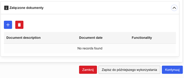 - Możesz również załączyć wymagane informacje w załącznikach klikając w niebieski „+”.