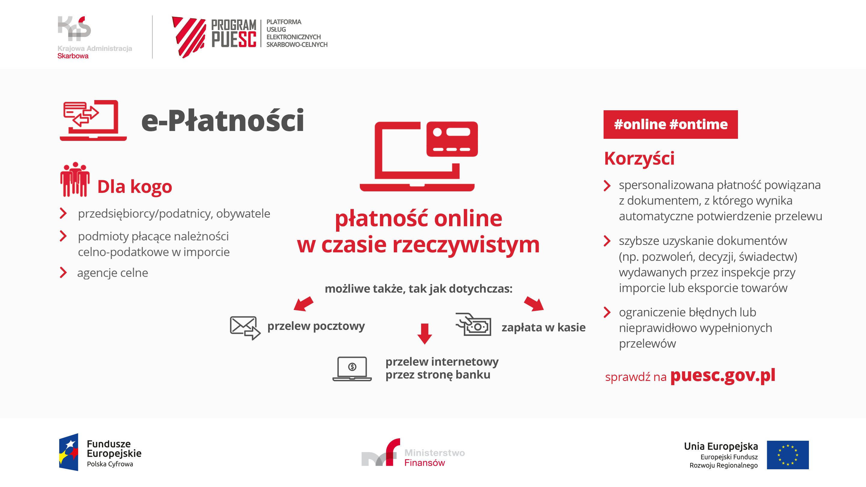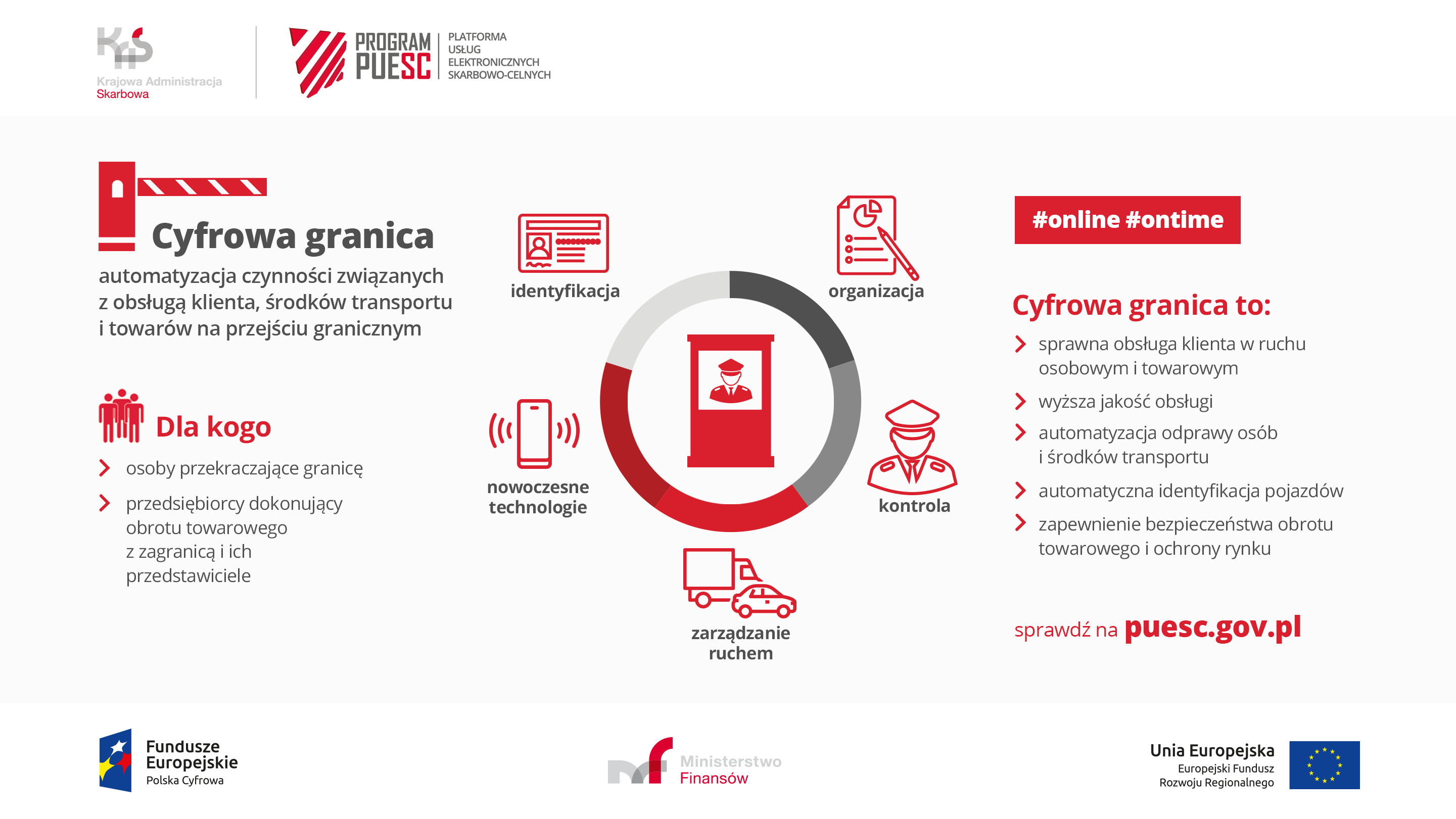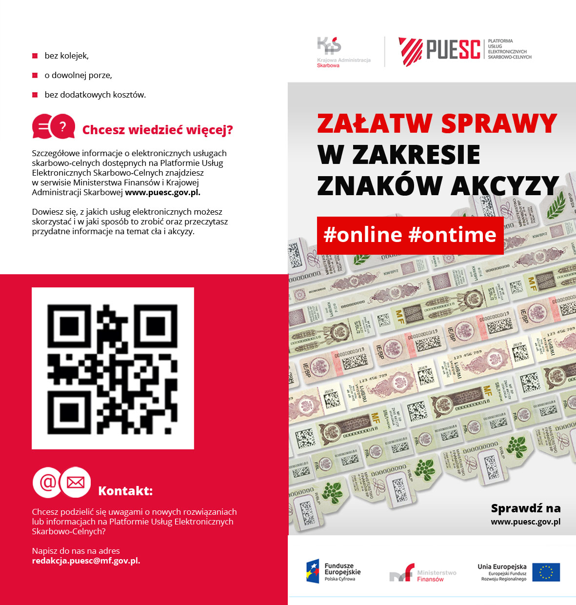 W zakładce "Materiały informacyjne i promocyjne" znajdziesz materiały graficzne do pobrania, materiały wideo i linki do informacji w Internecie, które dotyczą Projektu "Platforma Usług Elektronicznych Skarbowo-Celnych (PUESC)".